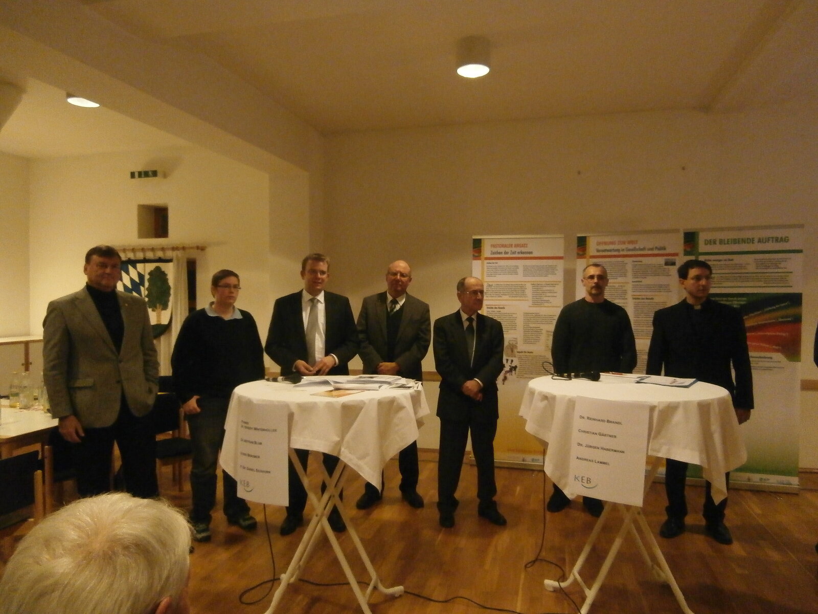 Vertreter aus Kirche und Politik hatte die Kath. Erwachsenenbildung im Bistum Eichstätt zu einer Podiumsdiskussion über die Folgen des Zweiten Vatikanischen Konzils eingeladen. Gut 100 Besucher waren ins Kloster Kösching gekommen und verfolgten interessiert der Gesprächsrunde. MdB Dr. Reinhard Brandl berichtete, dass es im Deutschen Bundestag eine ganze Reihe von Abgeordneten beider Konfessionen gebe, die Ansätze der Kirche in die politische Diskussion einbringen. Allerdings sei diese Haltung weniger unter den jungen Abgeordneten zu finden, so Brandl. Anders stelle sich dagegen die Situation in der Stadt Berlin dar. Dort sind nur ca. 10 % der Bevölkerung überhaupt Mitglieder in einer Kirche.