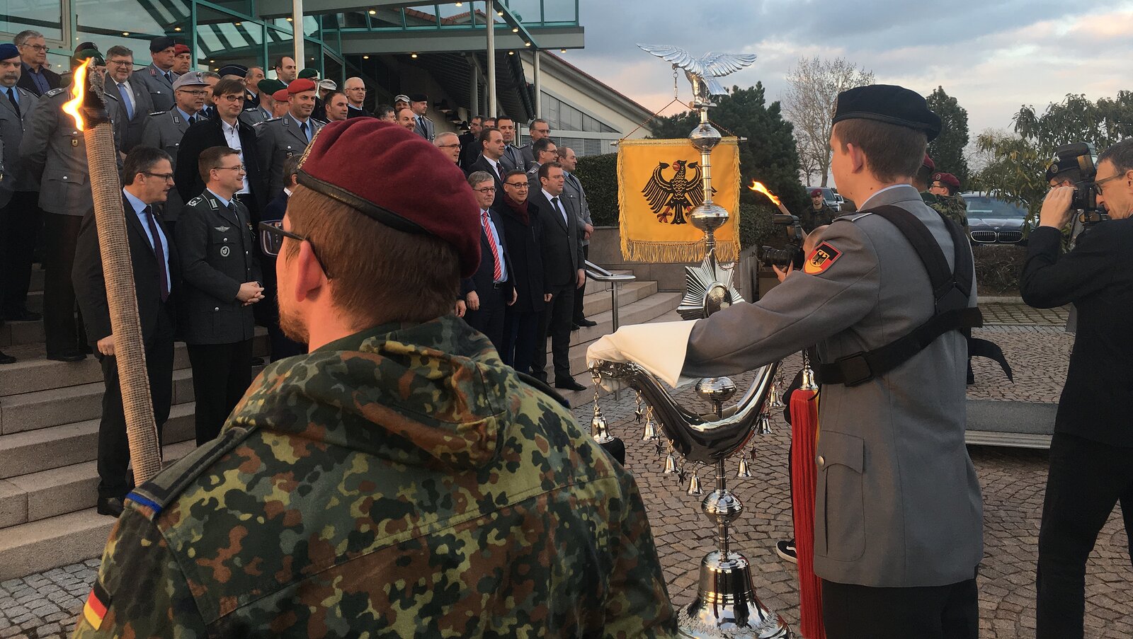 Im Anschluss an die Podiumsdikussion war der erste Tag der Tagung offiziell beendet. Zur Überraschung der Ehrengäste aus dem Parlament gab es noch ein kleines Platzkonzert des Heeresmusikkorps Ulm mit freundlicher Unterstützung der Fackelträger des Kommandos Spezialkräfte (KSK).