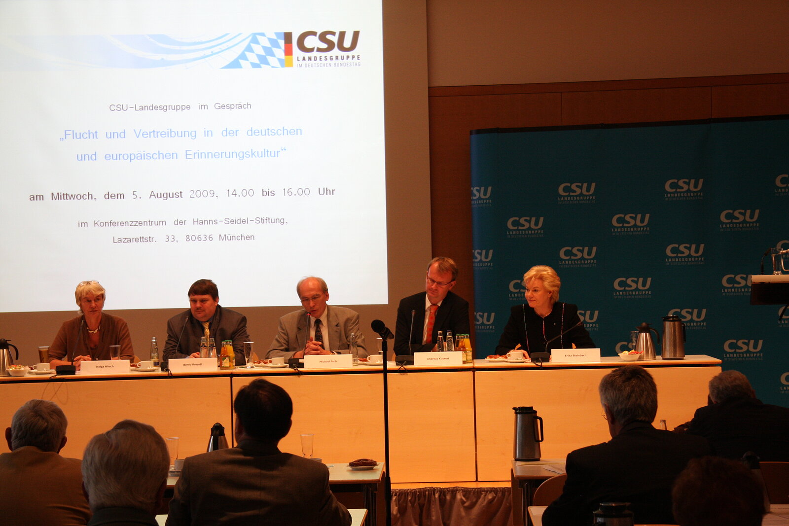Auf Einladung der CSU-Landesgruppe im Deutschen Bundestag nahm Reinhard Brandl am Kongress "Flucht und Vertreibung in der deutschen und europäischen Erinnerungskultur" in München teil. Mit dazu eingeladen hatte er Rosina Schiesser, die Vorsitzende des Bundes der Vertriebenen in Ingolstadt sowie weitere Vertreter der örtlichen Landsmannschaften, Hans Metzger und Stefan Mlynarzek. Der hochkarätig besetzte Kongress diente dazu das Bewusstsein um die mit der Vertreibung verbundenen Problemstellungen erneut zu unterstreichen und einen Startpunkt für weitere Entwicklungen in diesem weiten Themenfeld zu geben. Die CSU-Landesgruppe hat sich in den letzten Jahren massiv für die Interessen der Vertriebenen eingesetzt und mit der Stiftung Flucht, Vertreibung, Versöhnung einen gewichtigen Meilenstein im Bezug auf die Bewältigung der Vertriebenenproblematik geleistet. Landesgruppenchef Dr. Peter Ramsauer betonte, dass die Interessen der Vertriebenen in einem europäischen Kontext gesehen werden müssen, fragte aber auch kritisch, wie Flucht und Vertreibung in unserer Gesellschaft heute wahrgenommen werden. Erika Steinbach, Präsidentin des Bundes der Vertriebenen und Mitglied des Bundestages, bezeichnete die Vertriebenen als "Hefe des deutschen Wirtschaftswunders" und stellte überzeugend fest, dass die Interessen ihres Verbandes von gesellschaftlichem Interesse sein müssen, da Vertreibung nicht von der Person, sondern vom Wohnort abhängig war. Seine Abrundung fand die Tagung in einer ausgewogen, aber stimmgewichtigt besetzten Gesprächsrunde mit Erika Steinbach, MdB, Bernd Posselt, MdEP, Helga Hirsch (Publizistin) und Andreas Kossert (Historiker), bei welcher konstruktiv, aber mit der gebotenen kritischen Haltung auf diverse Problemstellungen im Bezug auf die Vertriebenenproblematik eingegangen wurde. Am Ende waren sich alle Teilnehmenden einig darin, dass die Erinnerung niemals abgeschlossen werden kann. Es sei lediglich eine Unterscheidung zwischen noch heißen und bereits vernarbten Wunden möglich. Das Thema Flucht und Vertreibung hat auch für viele Menschen in unserer Region große Bedeutung und so nutzte Brandl die Gelegenheit sich mit den zahlreich anwesenenden Vertretern der Vertriebenenverbände auszutauschen und versprach jederzeit für deren Anliegen ein offenes Ohr zu haben.