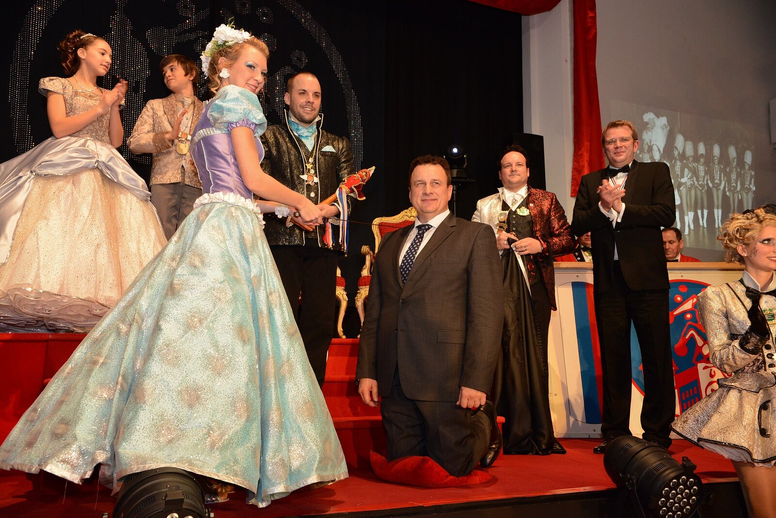 Der Startschuss für die Faschingssaison 2015 ist gefallen. Beim Krönungsball der Burgfunken wurden nicht nur die beiden Prinzenpaare und die Garde , sondern traditionell auch der neue Ritter von der Hutzeldörre vorgestellt. Nach fulminanten Auftritten der Garden, die mit tosendem Beifall bedacht wurden, wurde dann das Geheimnis gelüftet und der neue Ritter vorgestellt. Dem amtierenden „Ritter von der Hutzeldörre“, MdB Dr. Reinhard Brandl, fiel dann die Aufgabe zu, den Ritter zu präsentieren. In einer sehr launigen Rede stellte Reinhard Brandl seinen Nachfolger vor. Der „Ritter von der Hutzeldörre 2015“, Herr Fred Biber, wurde dann von Prinzessin Vivien I. in einer feierlichen Zeremonie zum Ritter geschlagen.
