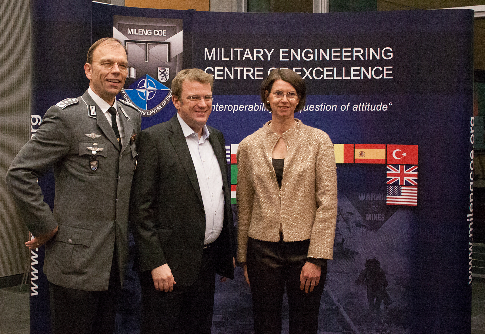 Oberst Niels Janeke, Dr. Reinhard Brandl MdB und Frau Dr. Kristiane Janeke; Foto: MILENG.COE