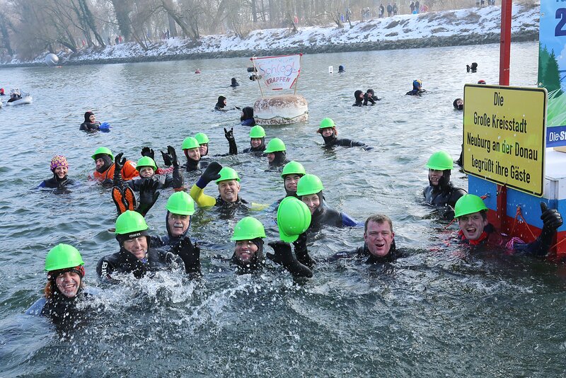 Ein neuer Teilnehmerrekord beim größten Winterschwimmen Europas: 2.262 Wagemutige stiegen an der Staustufe Bittenbrunn in die eiskalte Donau und schwammen bis zum Neuburger Donaukai. Aufgrund des niedrigen Wasserstandes dauerte das kalte Vergnügen in diesem Jahr ca. 70 Minuten. MdB Dr. Reinhard Brandl schwamm auch heuer mit der Gruppe der Stadt Neuburg und kam gut am Ziel an.