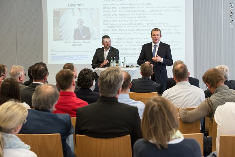 Zu einem Gespräch mit den Vertretern des Betriebsrats und einer anschließenden Podiumsdiskussion für die Mitarbeiter von MBDA war MdB Dr. Reinhard Brandl in den Hagenauer Forst gekommen.
