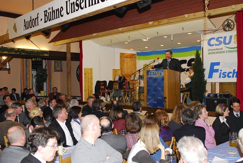 CSU-Kreisvorsitzender Hans Süßbauer konnte im voll besetzten Gasthaus Peterwirt 400 Gäste beim politischen Aschermittwoch begrüßen. H. Süßbauer betonte in seiner Begrüßung, dass man auch am Aschermittwoch nicht auf den politischen Gegner eindreschen muss, sondern auch auf feine Art und Weise die Interessen der eigenen Partei vertreten kann. Genau das hat MdB Dr. Reinhard Brandl in Unsernherrn getan. Ohne billige Polemik und altbekannte Sprechblasen setzte er sich intelligent und sachlich mit dem politischen Gegner auseinander. Nach seiner zweiten Rede vor dem Deutschen Bundestag sei er jetzt reif für den Aschermittwoch in Unsernherrn, hatte Ortsvorsitzender Christian Siebendritt den Hauptredner des Abends angekündigt. Doch bevor dieser die Bühne betragt, sorgte Bruder Barnabas (Martin Dick) für kabarettistische Unterhaltung. In seiner Rede streifte Reinhard Brandl alle Felder der Politik und berichtete über seine Arbeit in Berlin, vor allem aus den Ausschüssen Bildung und Forschung sowie Verteidigung. Dass der Verteidigungsausschuss dann zum Kundus-Untersuchungsausschuss wurde, hat dessen Bedeutung nochmals erhöht und beschäftige ihn sehr, so MdB R. Brandl. Die Aufarbeitung des Angriffs auf die Tanklastzüge in Afghanistan hält Brandl für sehr wichtig. Wenn einem Offizier bei nachträglicher Betrachtung ein Fehler unterstellt werden müsse, so sei dieser Mann kein Verbrecher, sondern wollte seine Soldaten schützen. Die Aufklärung der Vorgänge ist für ihn sehr wichtig und vor allem eine Frage des Vertrauens. Der Eindruck, hier solle etwas vertuscht werden, müsse vermieden werden, denn das sei wiederum schädlich für das Ansehen der Bundeswehr. Zum Thema Wirtschaftskrise betonte Brandl, dass er sehr verärgert darüber sei, dass die Verursacher, einige zockende Banken, jetzt noch mehr zockten, weil sie jetzt wüssten, der Staat könne sie nicht untergehen lassen, weil sie systemrelevant seien. Im letzten Teil seiner Rede ging Brandl auch auf die Themen Familienpolitik und Landwirtschaft ein. Die Zuhörer verabschiedeten Dr. Reinhard Brandl mit lang anhaltendem Beifall.