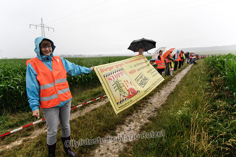 An vielen Orten im Landkreis Neuburg-Schrobenhausen fanden an diesem Sonntag Veranstaltungen und Aktionen zur geplanten Gleichstromtrasse statt. Mit einer langen Menschenkette demonstrierte die Bürgerinitiative Neuburg-Nord bei strömendem Regen gegen die Monstertrasse. MdB Dr. Reinhard Brandl war ebenfalls gekommen und zeigte damit seine Solidarität mit den Bürgerinnen und Bürgern.