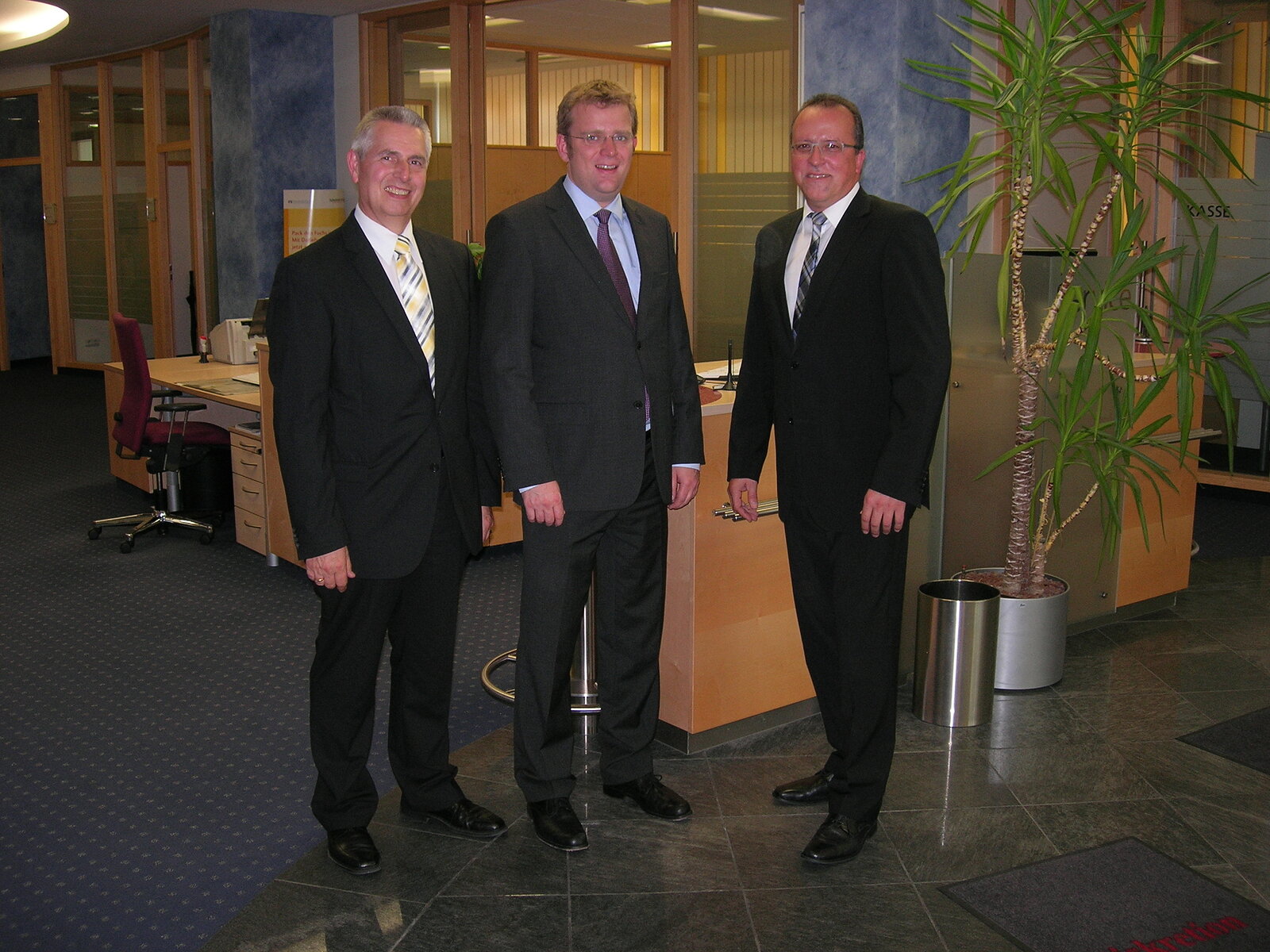 Der Bundestagsabgeordnete Dr. Reinhard Brandl stattete den Vorständen der Raiffeisenbank Schrobenhausen eG im Hinblick auf die Verschmelzung der Raiffeisenbank mit der Volksbank Schrobenhausen einen Besuch ab. Im Mittelpunkt des Gespräches stand die Fusion der beiden Genossenschaftsbanken vor Ort. Dieser Zusammenschluss stärkt den Wirtschaftsstandort Schrobenhausen und sichert auf lange Sicht die Existenz der genossenschaftlichen Strukturen auch im Umland, so Dr. Reinhard Brandl.