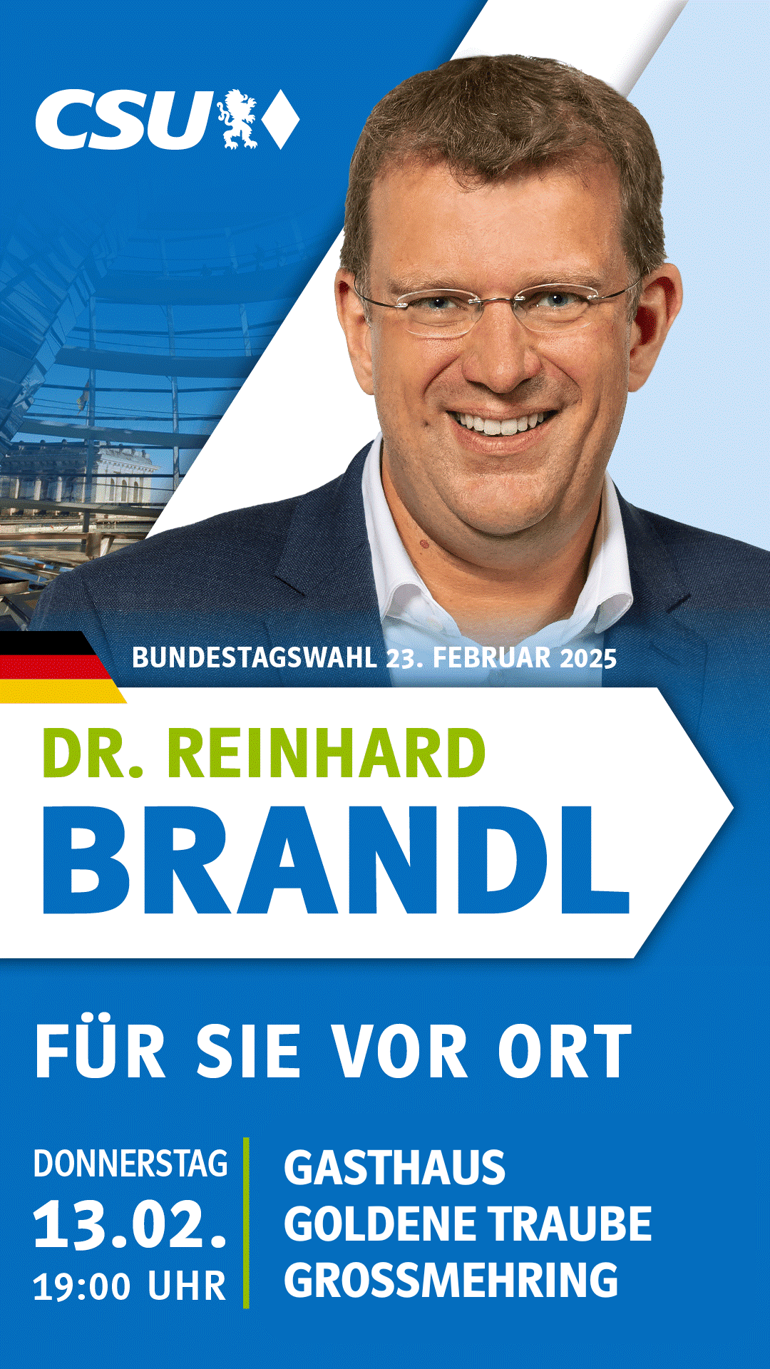 Reinhard Brandl vor Ort in Großmehring