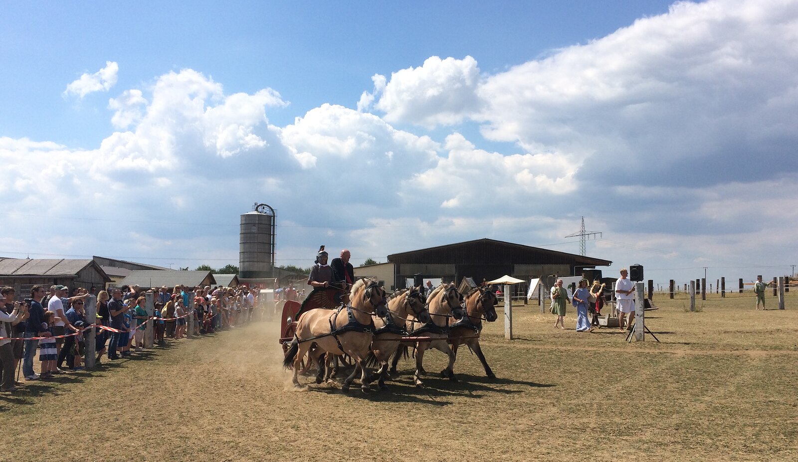Michael Donabauer freute sich sehr über die zahlreichen Gäste in seiner Villa Rustica, die zum römischen Erntefest gekommen waren. Das bäuerliche Leben in der Römerzeit war sehr hart und die Arbeit sehr beschwerlich. Als Dank für eine gute Ernte wurde der Göttin Ceres in der Zeit vor 1900 ein Opfer gebracht. Das Erntedankfest in der Villa Rustica war wieder einmal ein Fest, bei dem für Jung und Alt vielen geboten war. Höhepunkt war der Festzug rund um den römischen Gutshof, der von der Quadrige angeführt wurde. Mit dabei war auch in diesem Jahr neben dem Schirmherrn, Landrat Anton Knapp, Bundestagsabgeordneter Dr. Reinhard Brandl.