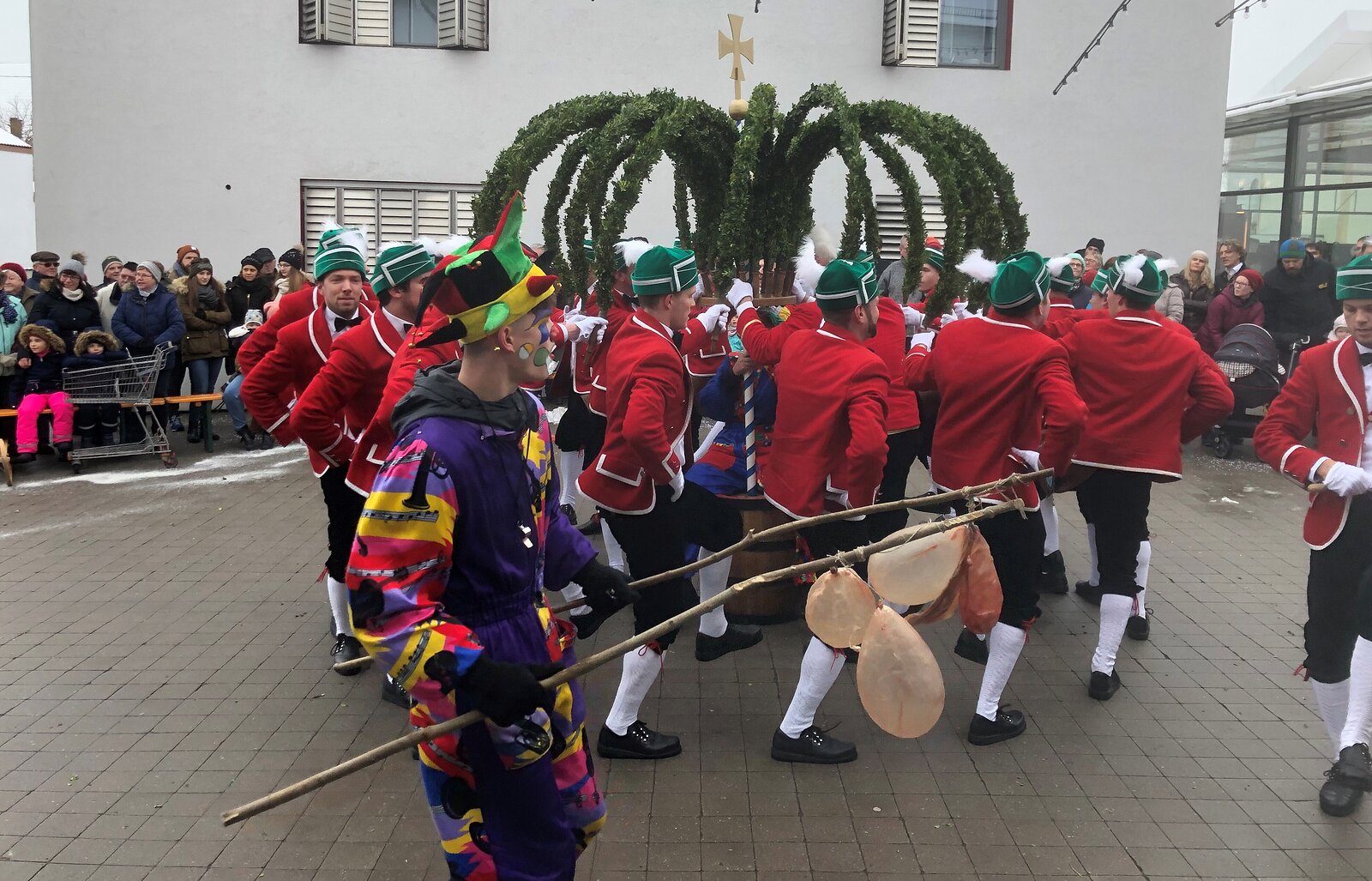 Die Großmehringer Schäffler tanzen in Eitensheim; Foto: R. Brandl