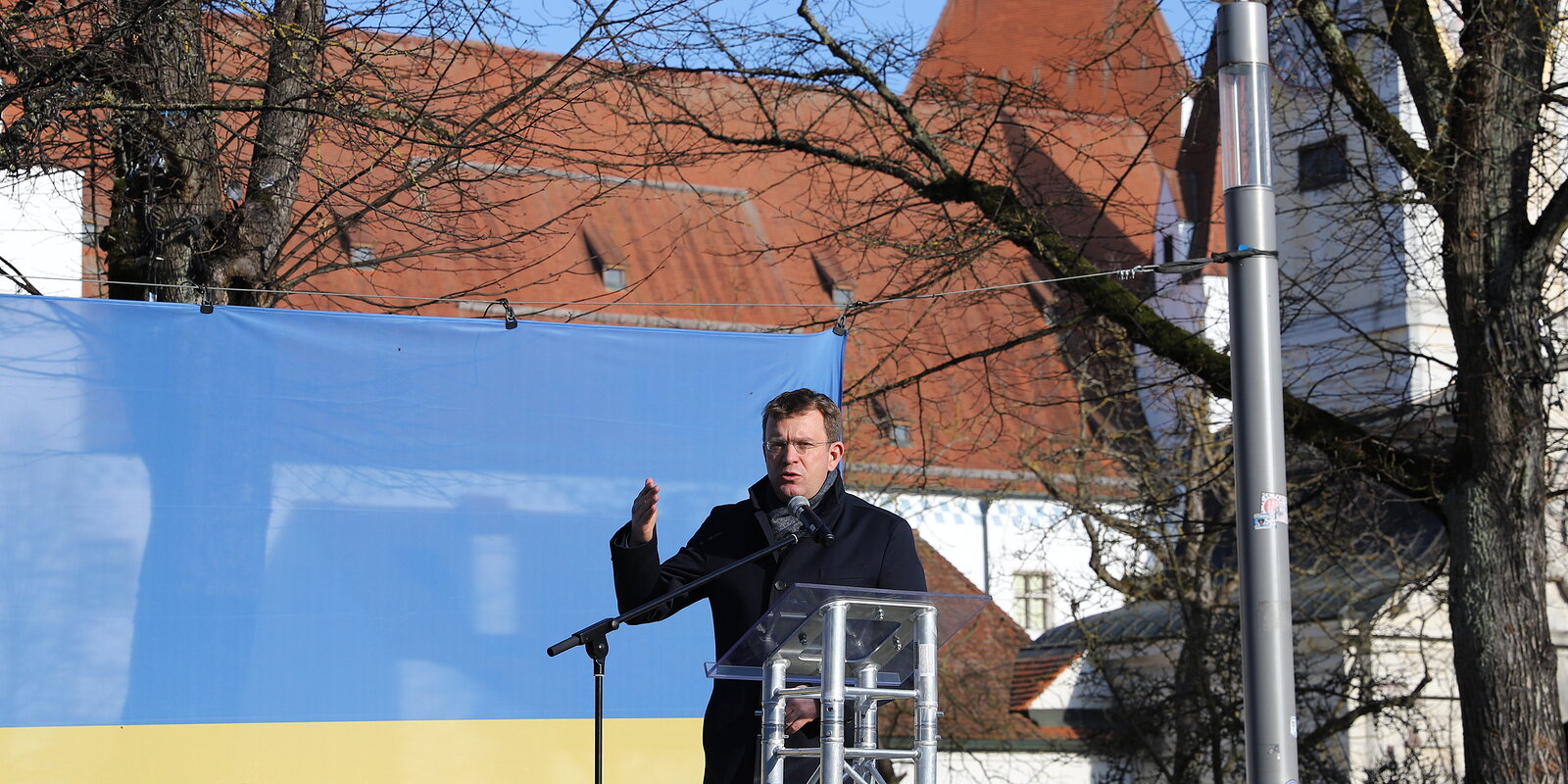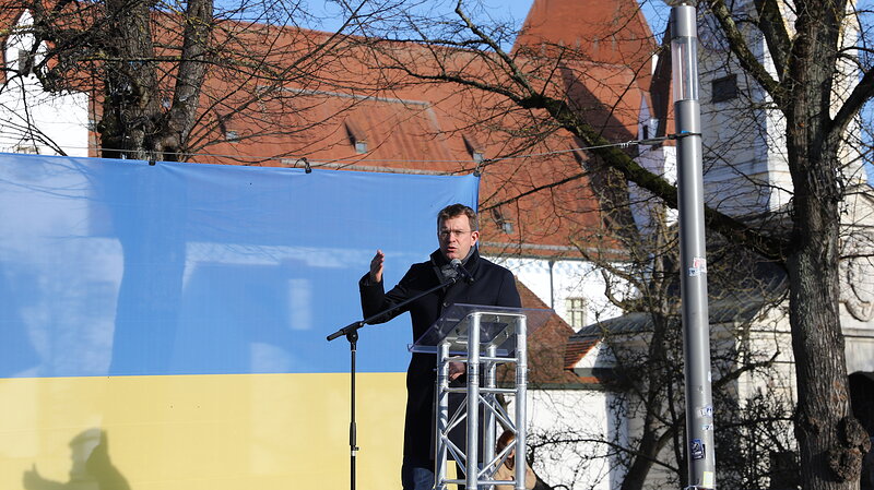 Dass sich die deutsche Bundesregierung dazu entschlossen hat, Waffen an die Ukraine zu liefern, begrüßt auch Dmytro Shevchenko, ukrainischer Konsul in München. Er war ebenfalls zur Kundgebung nach Ingolstadt gekommen. Er bedankte sich für die Unterstützung seiner Landsleute.