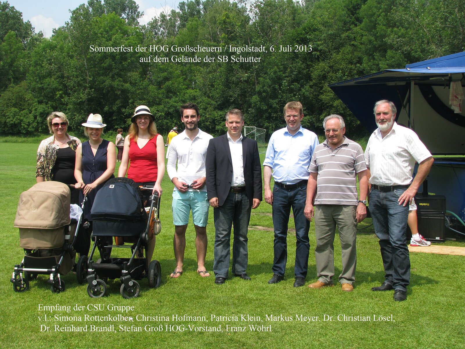 Auf Einladung der Heimatortsgruppe Großscheuern war eine Delegation der Ingolstädter CSU beim Sommerfest auf dem Sportgelände des SB Schutter zu Gast. Vorsitzender Stefan Groß konnte Stadtratskandidatin Simona Rottenkolber, Stadträtin Christina Hofmann, Bezirkstagskandidatin Patricia Klein, Landtagslistenkandidat Markus Meyer, Oberbürgermeisterkandidat Dr. Christian Lösel, Bundestagsabgeordneten Dr. Reinhard Brandl und Stadtrat Franz Wöhrl herzlich willkommen heißen.