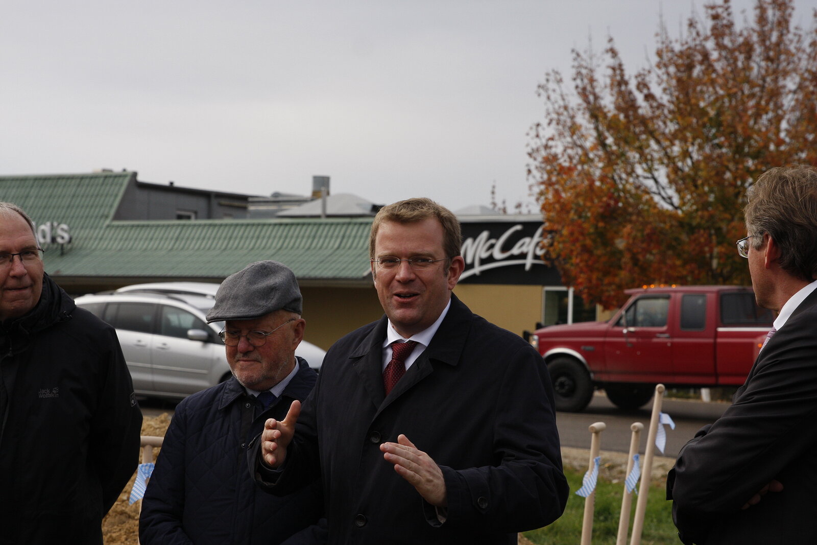 Zum feierlichen Spatenstich für die Höhenfreimachung der B16-Anbindung am Südpark war Dr. Brandl nach Neuburg eingeladen. Nachem ein Teil der Kosten auch aus Bundesmitteln fließt, war dem Bundestagsabgeordneten der Dank der anwesenden Mandatsträger sicher. Reinhard Brandl betrachtete das Projekt, das ihn seit Anbeginn seiner Bundestagszugehörigkeit begleitet, als eine Perle in einer Kette vieler Maßnahmen. Das Fernziel der vierspurigen B16 von der Autobahn A9 bis zur Bundesstraße B2 im Landkreis Donauwörth wird durch diese Maßname begleitet.