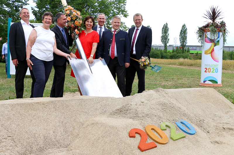 Mit einem überdimensional Spaten wurde der "erste Spatenstich" für die Landesgartenschau 2020 in Ingolstadt gemacht. Regierungspräsidenten Brigitta Brunner, Landtagsabgeordnete Christine Haderthauer und Bundestagsabgeordneter Dr. Reinhard Brandl assistierten dabei dem Ingolstädter Oberbürgermeister, Dr. Chritian Lösel, bei dieser Aufgabe. Auf einer 22 Hektar großen Fläche wird im Ingolstädter Nordwesten ein Naherholungsgebiet entstehen, das auch nach der Gartenschau für die Bürgerinnen und Bürger zur Verfügung stehen wird. Es wird in der Stadt eine "bleibende grüne Oase" entstehen, so Oberbürgermeister Dr. Christian Lösel in seiner Festrede.