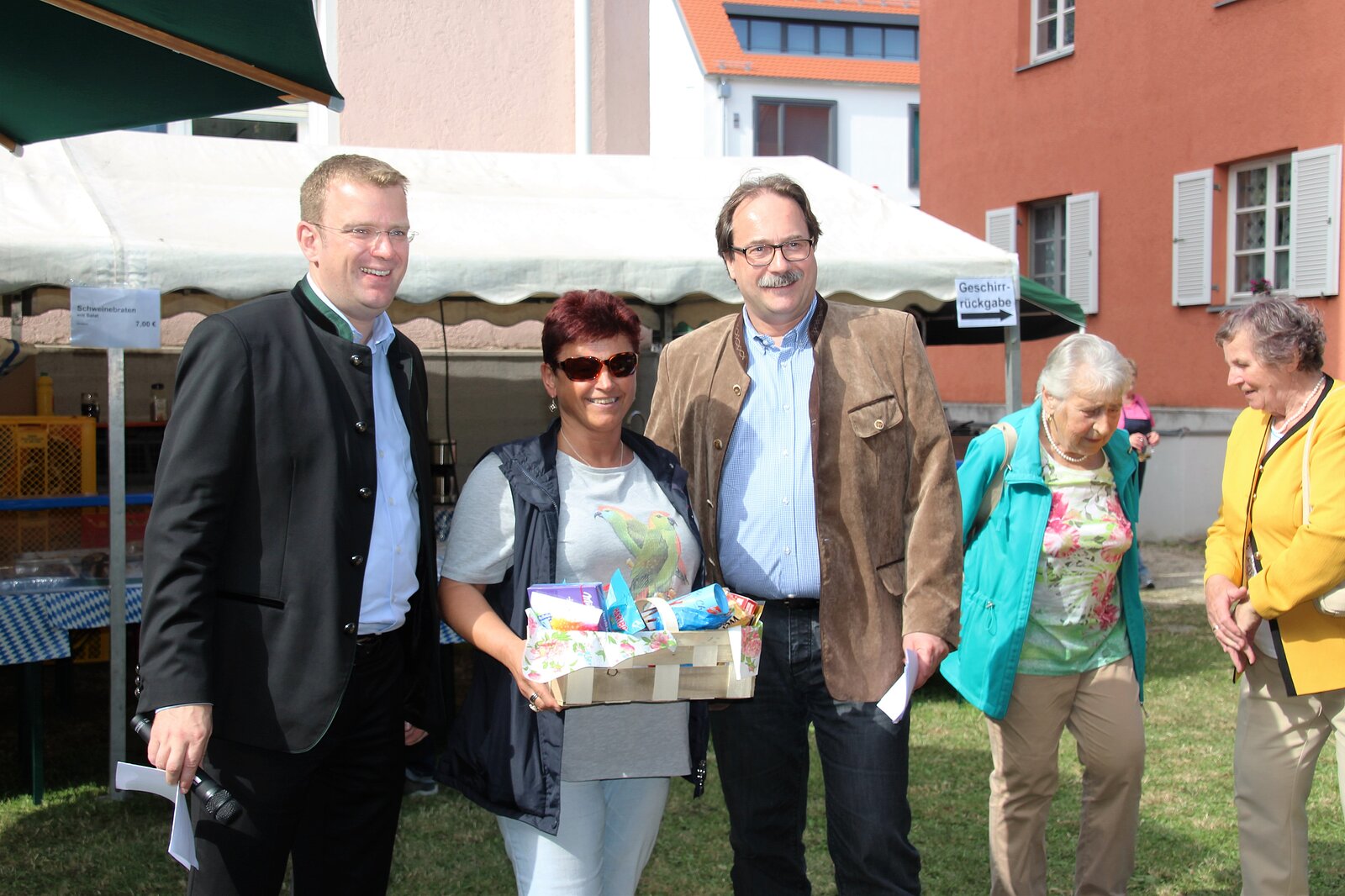 Reinhard Brandl verteilt die Preise an die Gewinner des Stadtteil-Quiz