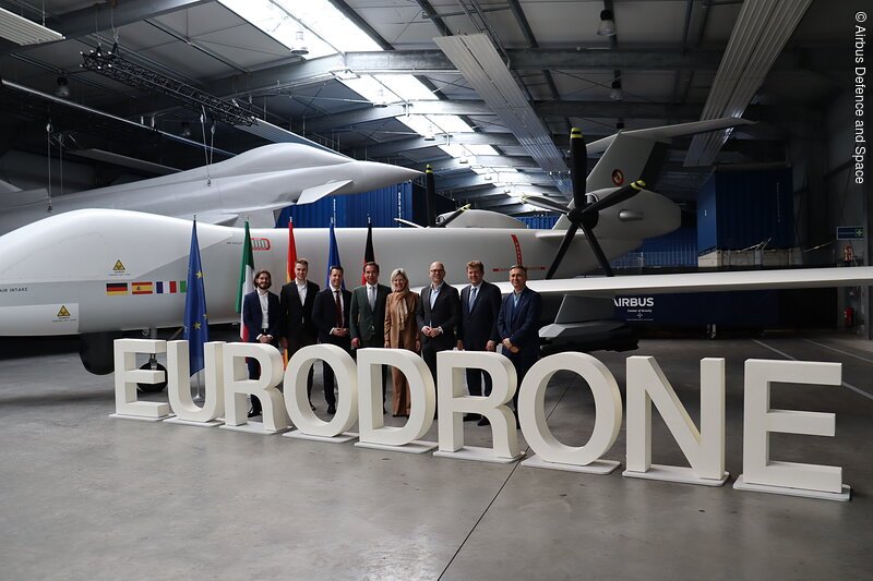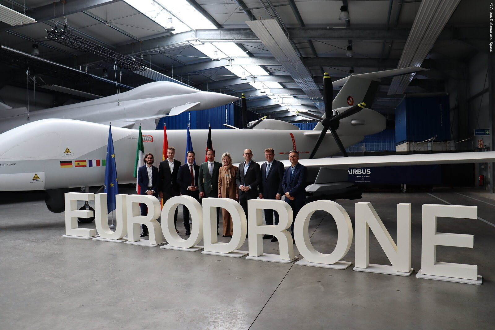 Dabei wurde den Politikern auch das europäische Gemeinschaftsprojekt die Eurodrohne, ein unbemanntes Luftfahrzeug, vorgestellt.