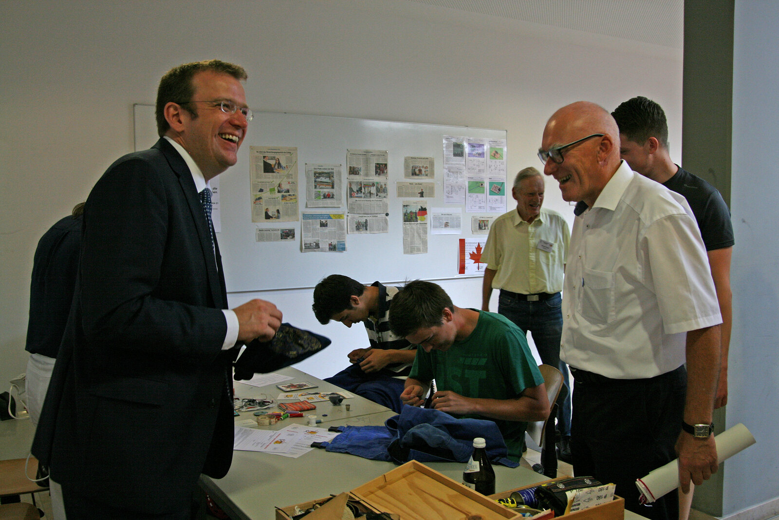 Die Schulfamilie der FOS/BOS setzte sich beim Aktionstag "Agenda 21" mit dem Umgang mit der Umwelt auseinander. Die richtige Mülltrennung, die Vermeidung von Abfall und die tägliche Energieeinsparung waren Themen, die von Schülerinnen und Schülern in den letzten Wochen bearbeitet wurden. Herausgekommen ist ein lehrreicher Parcours durch das Schulgebäude, der von den zahlreichen Besuchern mit Interesse begleitet wurde. Im Reparatur-Cafe konnten die Gäste kaputte Geräte abgeben und auf eine Instandsetzung hoffen. Auch in der Nähstube herrschte großer Andrang. MdB Dr. Reinhard Brandl hatte sein Schlossfest-Gewand mitgebracht, um ein kleines Malheurs beheben zu lassen. Beim Schlossfest-Festzug hatte sich ein Knopf gelöst, der sofort wieder angenäht wurde. Gute Geschäfte machte auch der Verkaufsstand der Aktion "Plant for Planet". Die dort angebotene nachhaltig erzeugte Schokolade fand reissenden Absatz. Am Ende des Tages konnte Schulleiter Fritz Füßl von einem sehr erfolgreichen Aktionstag sprechen und lobte alle Beteiligten für ihren Einsatz.