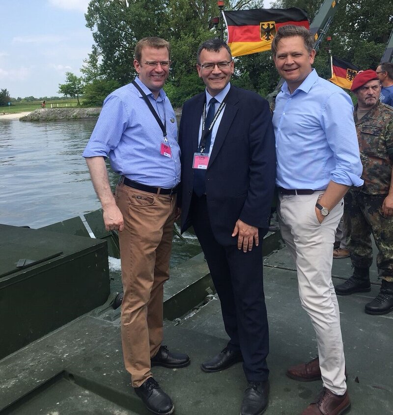 Zum Tag der Bundeswehr waren in diesem Jahr Fünfzehntausend Besucher in die Pionierkaserne auf der Schanz gekommen. Der hervorragend organisierte Aktionstag zeigt das breite Spektrum, was das Heer aktuell an Gelände- und Gefechtsfahrzeugen zu bieten hat. Neben den kostenlosen Fahrten auf der Donau sind vor allem Mitfahrgelegenheiten in Kettenfahrzeugen sehr gefragt. Um die Mittagszeit ließ die Luftwaffe den neuen Transporter A 400 M über das Gelände fliegen. Unter den vielen Gästen war auch Staatsminister Florian Herrmann, der von Dr. Reinhard Brandl und Landtagskandidat Alfred Grob herzlich begrüßt wurde.