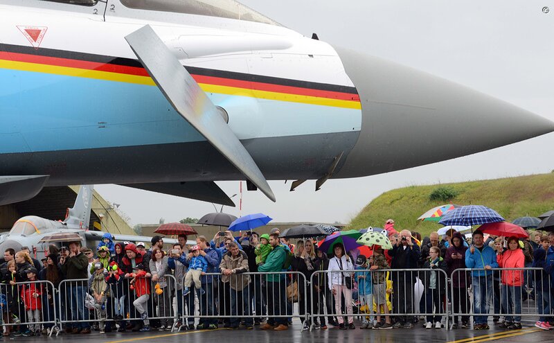 Rund Zwanzigtausend Besucher waren am Samstag nach Neuburg gekommen um sich von der Leistungsfähigkeit der Bundeswehr zu überzeugen. Spektakuläre Flugvorführungen, ausgestellte Waffensysteme, Fallschirmjäger die vom Himmel fiehlen, so feierte die Bundeswehr ihr 60jähriges Bestehen und das Geschwader Neuburg seinen 55. Geburtstag. In einer Videobotschaft richtete sich Bundesverteidigungsministerin Ursula von der Leyen an die Gäste. 180 Shuttlebusse brachten die Gäste von den umliegenden Parkplätzen auf das Gelände, so dass das befürchtete Verkehrschaos ausblieb. MdB Dr. Reinhard Brandl lobte Kommodore Holger Neumann für die perfekte Organisation, die seiner Aussage nach nahezu ein dreiviertel Jahr gedauert habe.