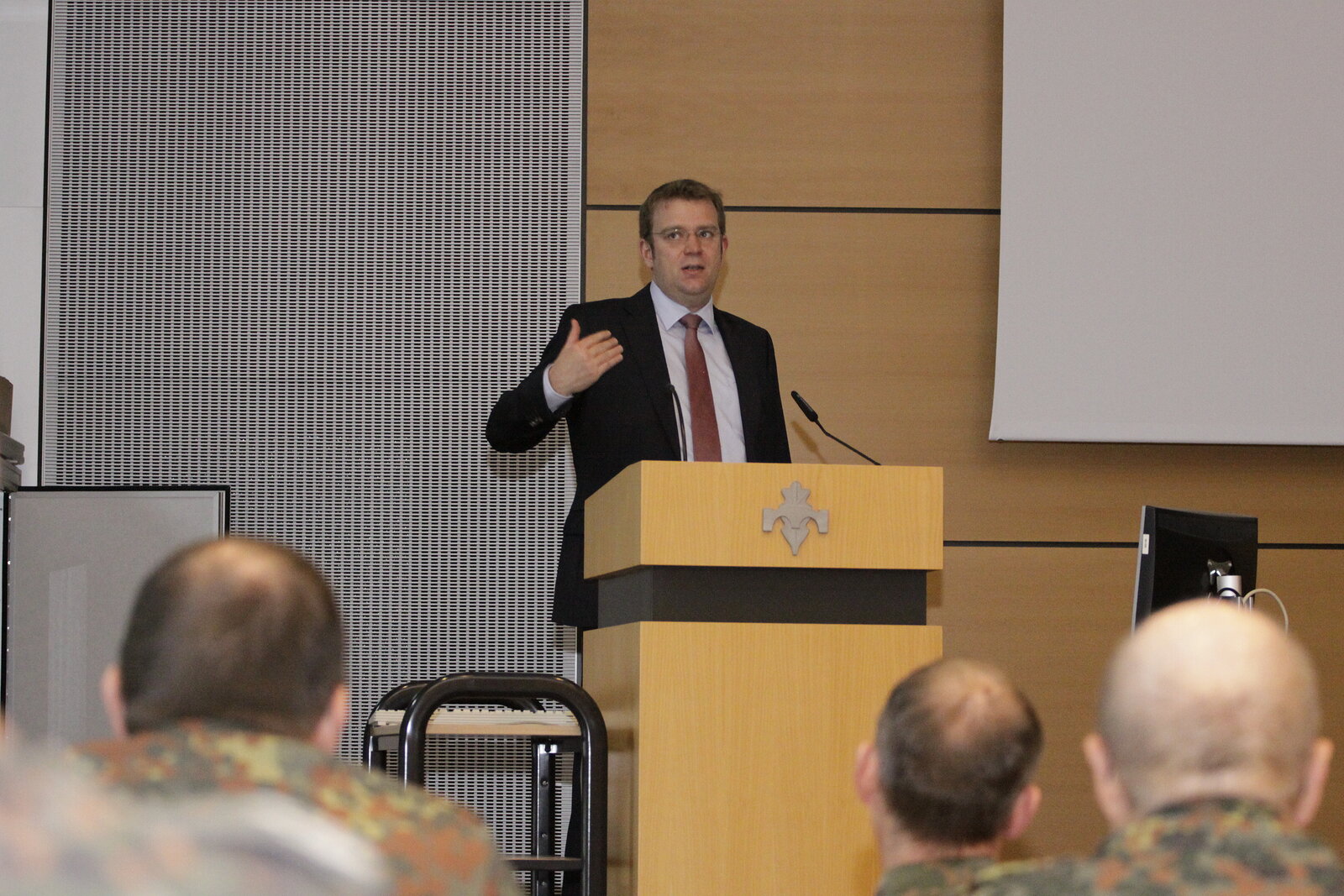 Die Zweite Tagung der Stabsoffiziere der Reserve der Pioniere fand vom 09. bis 11.10.2014 in der Pionierkaserne in Ingolstadt statt. Den Abschluss der Tagung bildete ein Vortrag von MdB Dr. Reinhard Brandl zum Thema -Aspekte der Reservisten aus politischer Sicht-. Reinhard Brandl, der Mitglied des Verteidigungsausschusses ist, stellte in seinem Vortrag fest, dass die Politik mehr dafür tun muss, die neue Rolle der Reservisten zu stärken, insbesondere die Akzeptanz durch die Bevölkerung, die Wirtschaft und durch die Politik selbst.