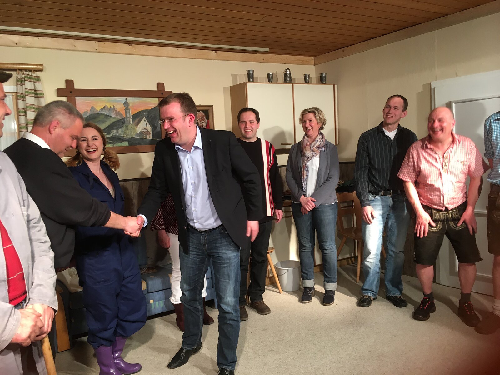 Die Theatergruppe Hagau führt in diesem Jahr das Stück "Aktivurlaub mit Strafgericht" auf. Gerne war MdB Dr. Reinhard Brandl der Einladung von Theaterleiter Andreas Eichhorn gefolgt und war ins Sportheim Zuchering gekommen. Der Abgeordnete verbrachte einen vergnüglichen Abend und strapazierte seine lachmuskeln. Anschließend bedankte er sich bei den Laien-Schauspielern für die großartige Leistung und wünschte für die noch kommenden Aufführungen viel Erfolg.
