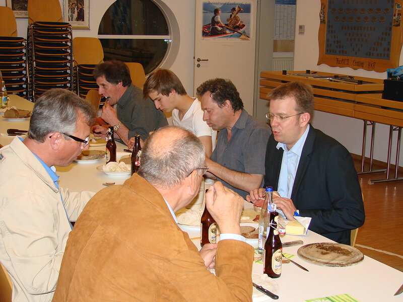 Beim diesjährigen Starkbierfest des CSU-Ortsverbandes Lenting hatte MdB Dr. Reinhard Brandl beim Schinkenschätzen den Schinken gewonnen. Er stiftete den Schinken der Trachtenkapelle Lenting, die wiederum den Abgeordneten zum Verzehr der Trophäe eingeladen hatten. Staatsminister a. D. Siegfried Schneider stiftete die Getränke. Im Rahmen der wöchentlichen Probe wurde nun im Beisein der beiden Stifter die zünftige Brotzeit verspeist. Zum Dank spielten die Musikerinnen und Musiker der Trachtenkapelle Lenting den Spendern noch ein Ständchen.