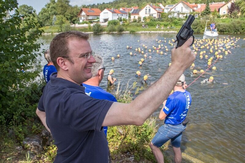 Der Bühler-Triathlon in Beilngries war wieder einmal ein Publikumsmagnet und ein Stelldichein der Triathleten aus dem ganzen Bundesgebiet. Organisator Gerhard Budy hatte in monatelanger Vorarbeit ein Sportevent der Superklasse organisiert. Zu einem kurzen Abstecher kam auch MdB Dr. Reinhard Brandl nach Beilngries und gab den Startschuss in der olympischen Disziplin im Schwimmen.