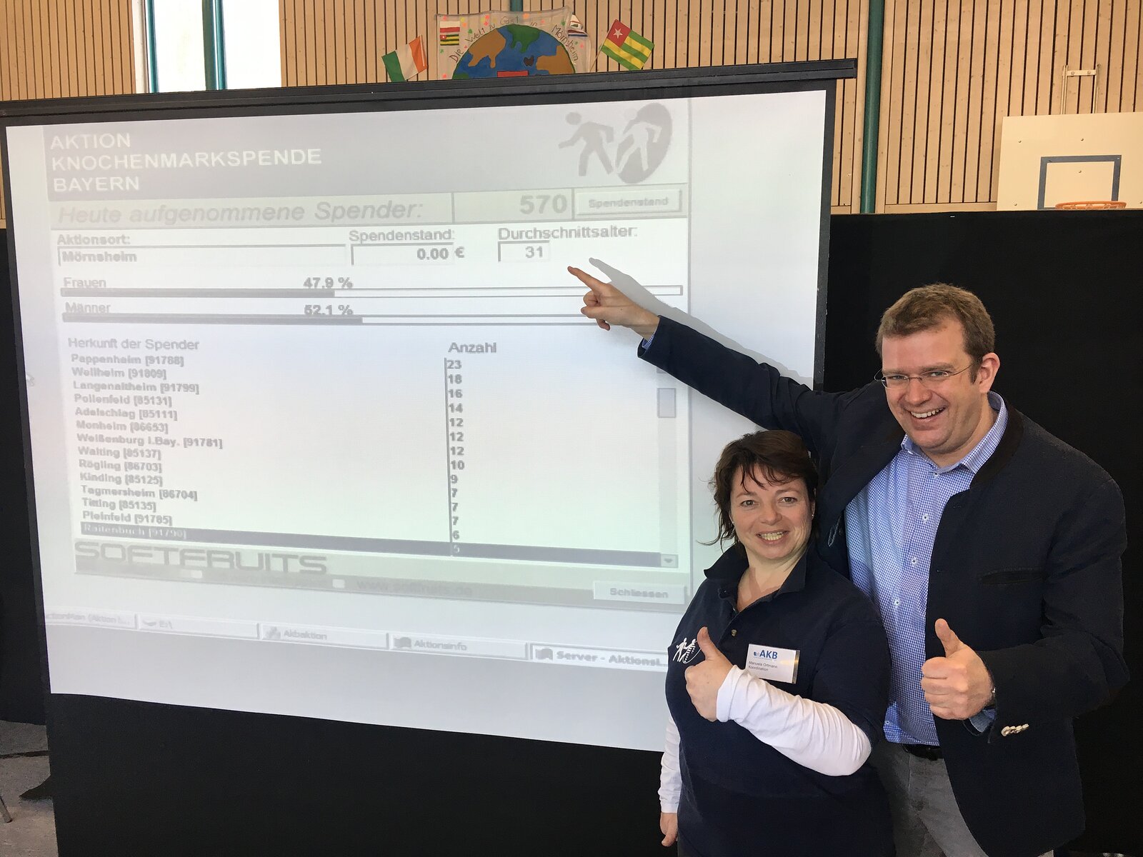Über Zweitausend Menschen waren nach Mörnsheim gekommen und ließen sich typisieren. Das Schicksal des kleinen Dominik hatte die Bevölkerung gerührt. Die Aktion Knochenmarkspende Bayern hatte selten einen so großen Andrang wie in Mörnsheim. Besonders erfreulich war zudem, dass die Bürgerinnen und Bürger nicht nur bei der Blutabnahme in der Wartescchlange standen, sondern auch vor der Spendenbox, um die Aktion auch finanziell zu unterstützen. Gerne war auch MdB Dr. Reinhard Brandl gekommen, um den Menschen Mut zu machen. Er selbst konnte vor sieben Jahr einem Menschen mit seiner Knochmarkspende das Leben retten und bezeichnete das auch als großes Glück für sich selber. Er wünschte der Aktion viel Erfolg und hofft mit allen Spendern, dass für den kleinen Dominik ein passender genetischer Zwillig gefunden werden kann.