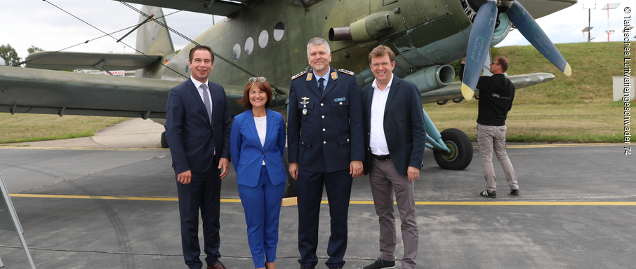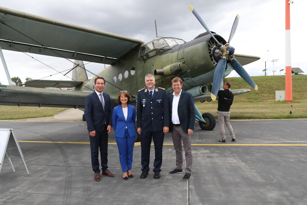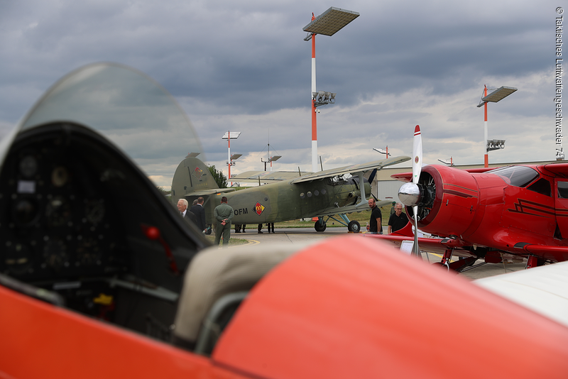 Insgesamt waren an diesem Festnachmittag sieben historische Maschinen auf dem Flugplatz ausgestellt. Eine Antonow A2-2 aus dem Jahr 1958 ging mit Kommodore Gordon Schnitger, der stellvertretenden Landrätin des Landkreises Neuburg Schrobenhausen, Rita Schmidt, dem Landtagsabgeordneten Matthias Enghuber und dem Bundesabgeordneten Dr. Reinhard Brandl für einen kurzen Rundflug über Neuburg sogar in die Luft.