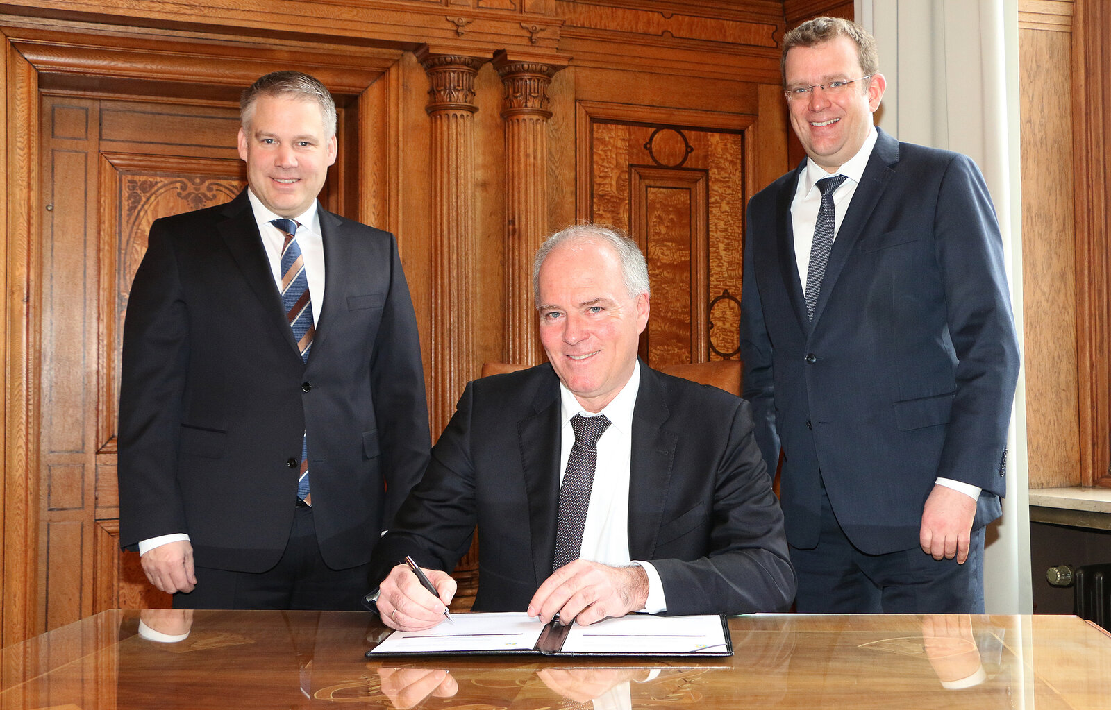 Der börsennotierte Triebwerkshersteller MTU ist nun nach der Deutschen Bahn, Audi und Airbus ein weiterer großer Partner für das Flugtaxi-Forschungsprogramm. Als Antriebsexperte kann sich der Münchner Konzern mit seinen weltweit Zehntausend Beschäftigten und einem Jahresumsatz von fünf Milliarden Euro die Mitarbeit in vielen der schon geplanten und noch zu entwickelnden Forschungsprojekte im Rahmen der Urban-Air Mobility-Initiative vorstellen. MTU-Programmvorstand Michael Schreyögg unterzeichnete im Beisein von Oberbürgermeister Dr. Christian Lösel und Dr. Reinhard Brandl MdB den Vertrag im Ingolstädter Rathaus.