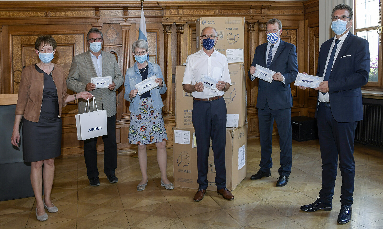 Mit 500.000 Mund-Nasen-Masken unterstützt Airbus soziale Einrichtungen im Freistaat Bayern, 50.000 Masken stellte das Unternehmen für die Verwendung in der Stadt Ingolstadt zur Verfügung. 15.000 Masken davon wurden jetzt an Behinderteneinrichtungen, Seniorenheime und zur Verteilung an Asylbewerber übergeben. Weitere Masken werden von der Stadt Ingolstadt für eine künftige Verteilung eingelagert.