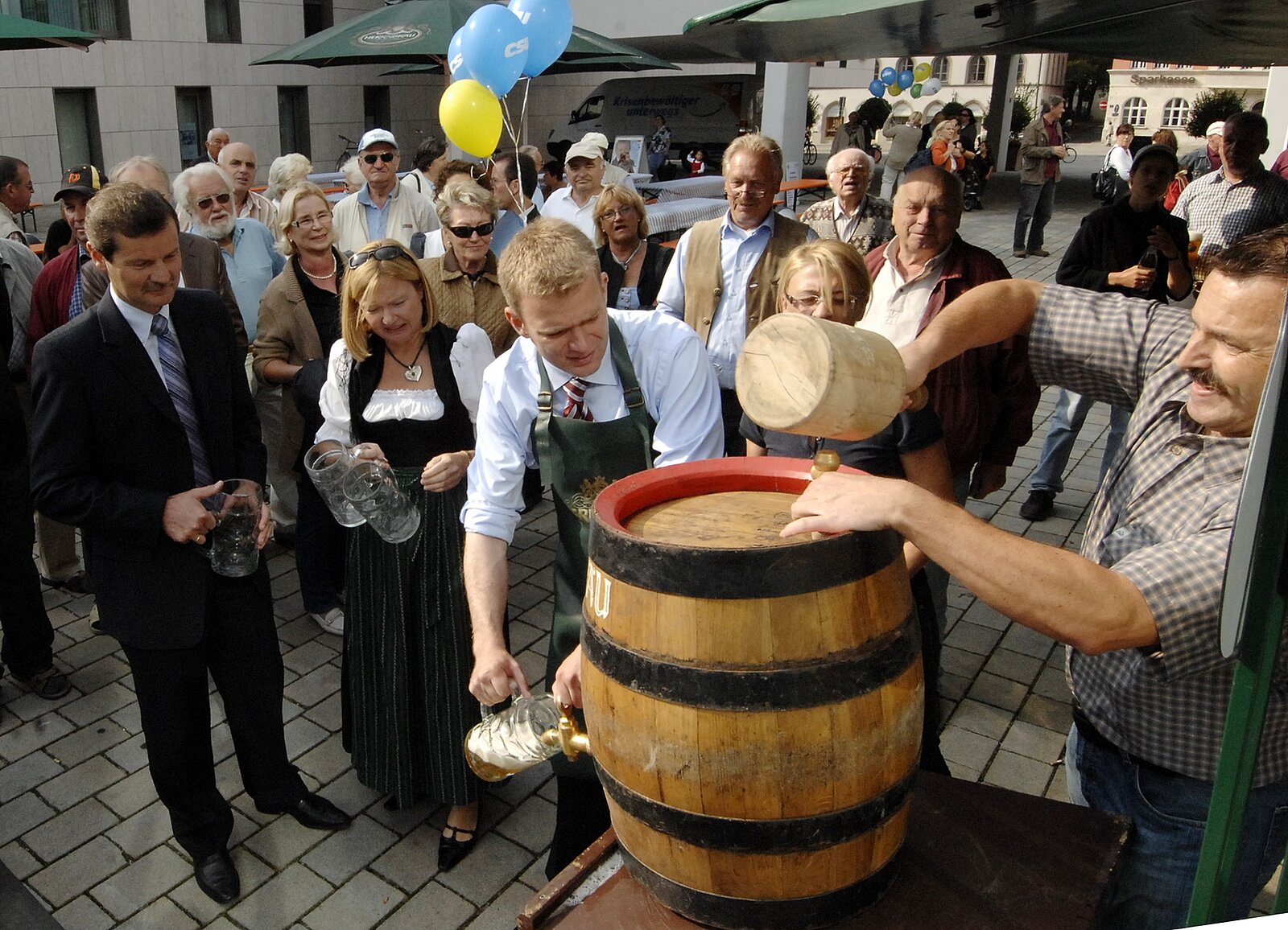 Das Viktualienmarktfest der CSU Mitte hat mittlerweile seinen festen Platz bei den Sommer-Veranstaltungen in der Altstadt. Im Sparkasseninnenhof war wieder einmal für Jung und Alt etwas dabei. Bürgermeister Albert Wittmann eröffnete das Fest und überließ den Bieranstich dem Bundestagskandidaten Dr. Reinhard Brandl, der das erste Faß gekonnt mit 2 Schlägen anzapfte. Bei herrlichem Wetter nutzten viele Gäste die Gelegenheit, Reinhard Brandl persönlich kennen zu lernen und mit ihm zu sprechen.
