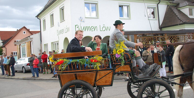 In einer der Festkutschen nahmen auch MdB Dr.Reinhard Brandl und die stellvertretende Landrätin, Bürgermeisterin Rita Böhm am Umzug teil.