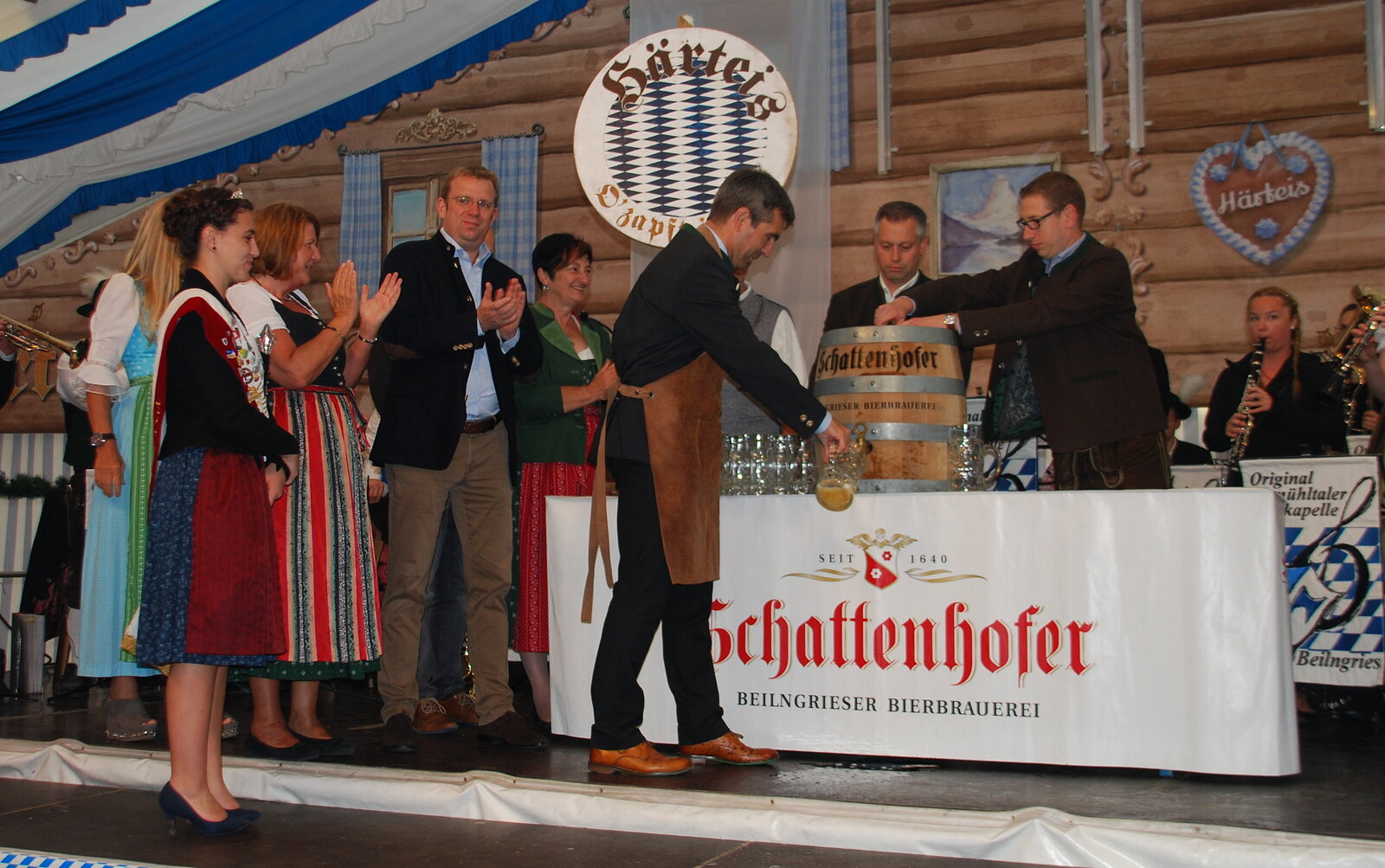 Nach dem Einzug des Wiesenwirtes und den Beilngrieser Vereinen zapfte Bürgermeister Alexander Anetsberger das erste Fass gekonnt an. MdB Dr. Reinshard Brandl war mit dabei und wünschte allen Besucherinnen und Besuchern eine schöne und friedliche Beilngrieser Wiesn.
