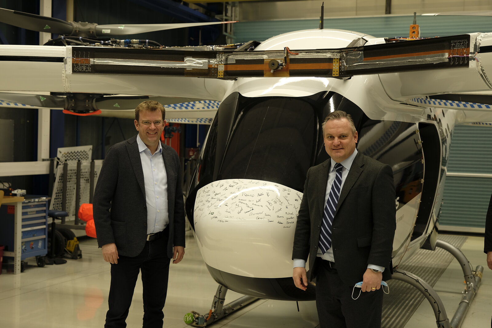 Zur Vorstellung des UAM-Projektes hatte Oberbürgermeister Dr. Christian Scharpf die Landräte aus der Region sowie die Vertreter von brigk zu einem Informationsbesuch ins Airbus Defence and Space Drone Center nach Manching eingeladen. Im Feilenmoos ist mittlerweile das Drone Center in Betrieb. MdB Dr. Reinhard Brandl informierte bei diesem Termin die Gäste über den Stand der Initiative.
