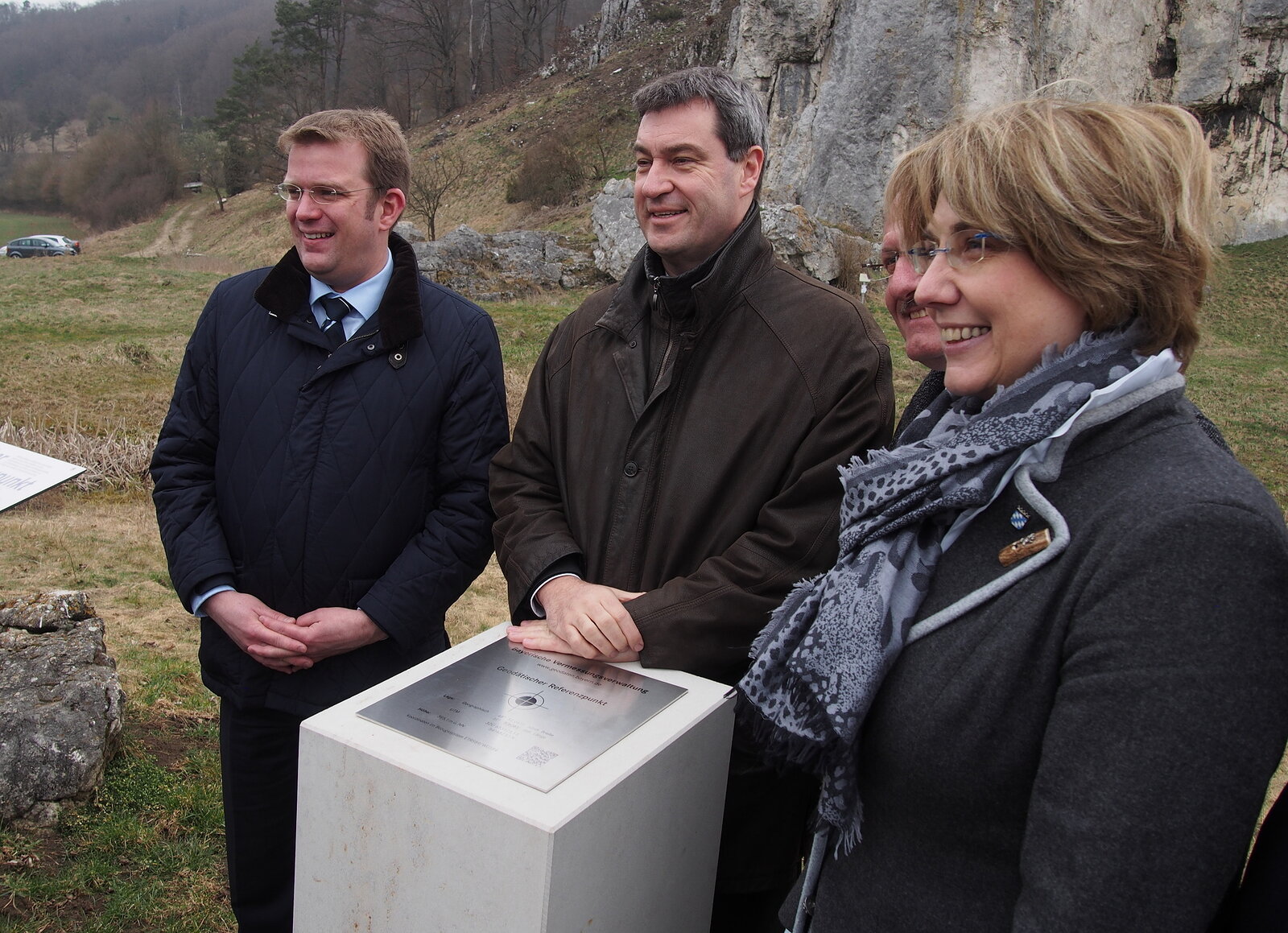 Derzeit werden in Bayern in jedem Landkreis öffentlich zugängliche Messpunkte errichtet, um Mountainbikern, Wanderern oder Geocachern eine Überprüfungs-möglichkeit ihrer mitgeführten GPS-Geräte zu bieten. Neben diesen technischen Möglichkeiten wird durch diesen Geodätischen Referenzpunkt auch die touristische Attraktivität des Naturparks Altmühltal erhöht. Staatsminister Dr. Markus Söder hat den Geodätischen Referenzpunkt des Landkreises Eichstätt am Burgsteinfelsen in Dollnstein offiziell vorgestellt. Neben der stv. Landrätin Tanja Schorer-Dremel war auch MdB Dr. Reinhard Brandl nach Dollnstein gekommen und überzeugte sich von den technischen Möglichkeiten des Referenzpunktes an Ort und Stelle.