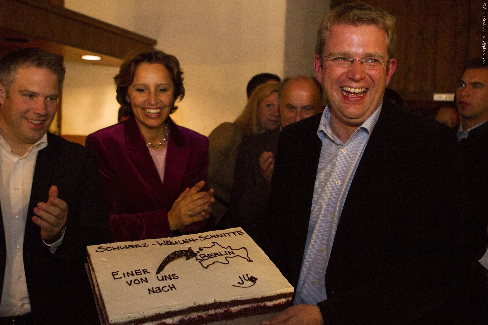 Ein donnernder Applaus begrüßte den Wahlsieger des Abends, MdB Dr. Reinhard Brandl, im CSU-Haus. Vor dem Haus wartete bereits eine Delegation des JU-Kreisverbandes Eichstätt auf Reinhard Brandl, die mit einem Transparent ihre Glückwünsche überbrachten. Als Überraschung hatte Kreisvorsitzende Maria Weber für den Abgeordneten eine "Schwarz-Wähler-Schnitte" mitgebracht, worüber sich Reinhard Brandl sehr freute. Die komplett versammelte Parteispitze aus dem gesamten Wahlkreis gratulierte dem Abgeordneten zu seinem grandiosen Wahlergebnis. Reinhard Brandl konnte sein Ergebnis von 2009 nochmals verbessern und erreichte im gesamten Wahlkreis 61,5 % der Erststimmen.