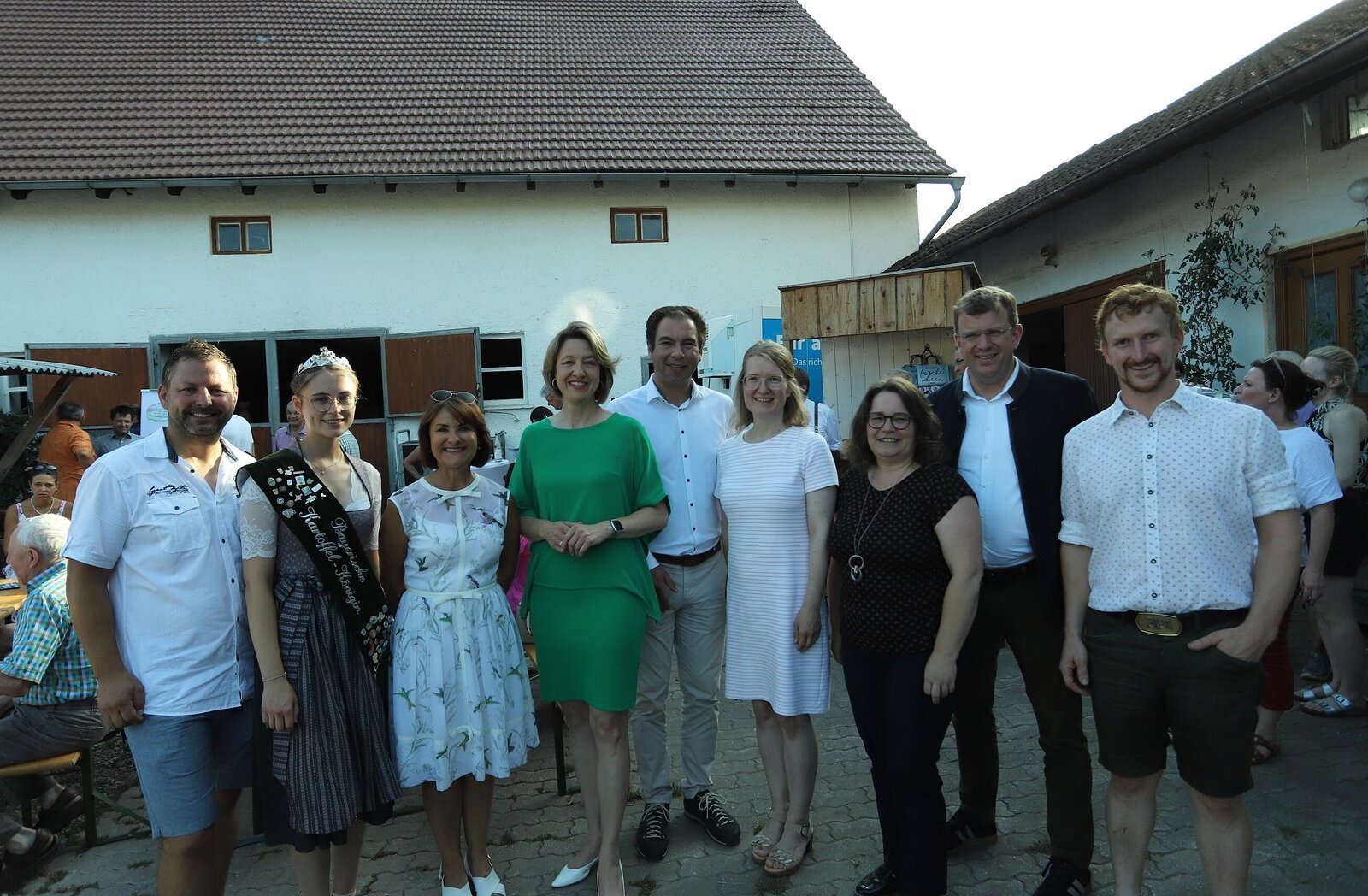 Auch die CSU-Kandidatinnen und Kandidaten für die Bezirkstags- und Landtagswahl am 8. Oktober nutzen die Gelegenheit sich auf dem Hof den interessierten Besucherinnen und Besuchern vorzustellen.
