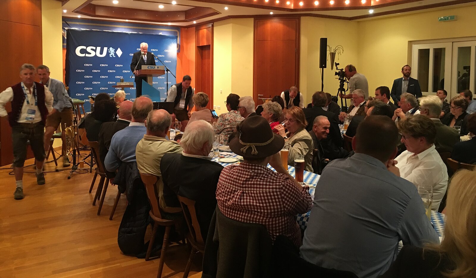 In seiner Rede blickte Horst Seehofer auf fast 40 Jahre politisches Engagement auch für den Landkreis Neuburg-Schrobenhausen zurück. So entwickelte sich die Region zwischen Donau und Paar vom Sorgenkind Bayerns zur Premiumregion der Bundes-republik. Der Innenminister unterstrich hierbei die Leistung vieler anwesender  Mandatsträger. Er sparte auch nicht mit Lob für Matthias Enghuber, den Direktkandidaten für die Landtagswahl, der als sein Mitarbeiter hervorragende Arbeit geleistet hat. Anschließend nutzte der Bundesinnenminister die Gelegenheit und stellte einige Pressemeldungen der vergangenen Wochen klar. Horst Seehofer schloss seine von viele Applaus begleitete Rede mit den Worten: "Deutschland gut, Bayern besser, Neuburg-Schrobenhausen am Besten".