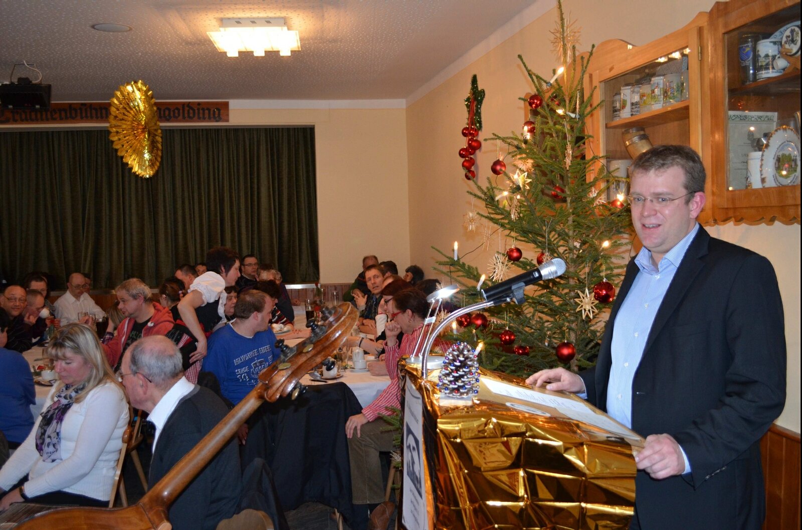 Zum 35. Mal hat Herr Karl Riedlmeier die Weihnachtsfeier zugunsten der Lebenshilfe Ingolstadt in Gungolding organisiert. Um Herrn Riedlmeier persönlich für diese großartige Leistung zu danken, ist die Vorsitzende der Lebenshilfe Bayern, Landtagspräsidentin Barbara Stamm, zur Weihnachtsfeier gekommen. Neben vielen spendenwilligen Gästen war auch MdB Dr. Reinhard Brandl mit dabei. Bürgermeister Hans Mayer nutzte die Gelegenheit, und bat die Landtagspräsidentin Barbara Stamm um einen Eintrag ins Goldene Buch der Gemeinde Walting. Hunderte behinderte Menschen der Lebenshilfe-Werkstätten Ingolstadt konnten sich über viele Spenden freuen. Reinhard Brandl würdigte in seinem Grußwort das Lebenswerk von Karl Riedlmeier und sprach ihm seinen Dank und seine Anerkennung aus.