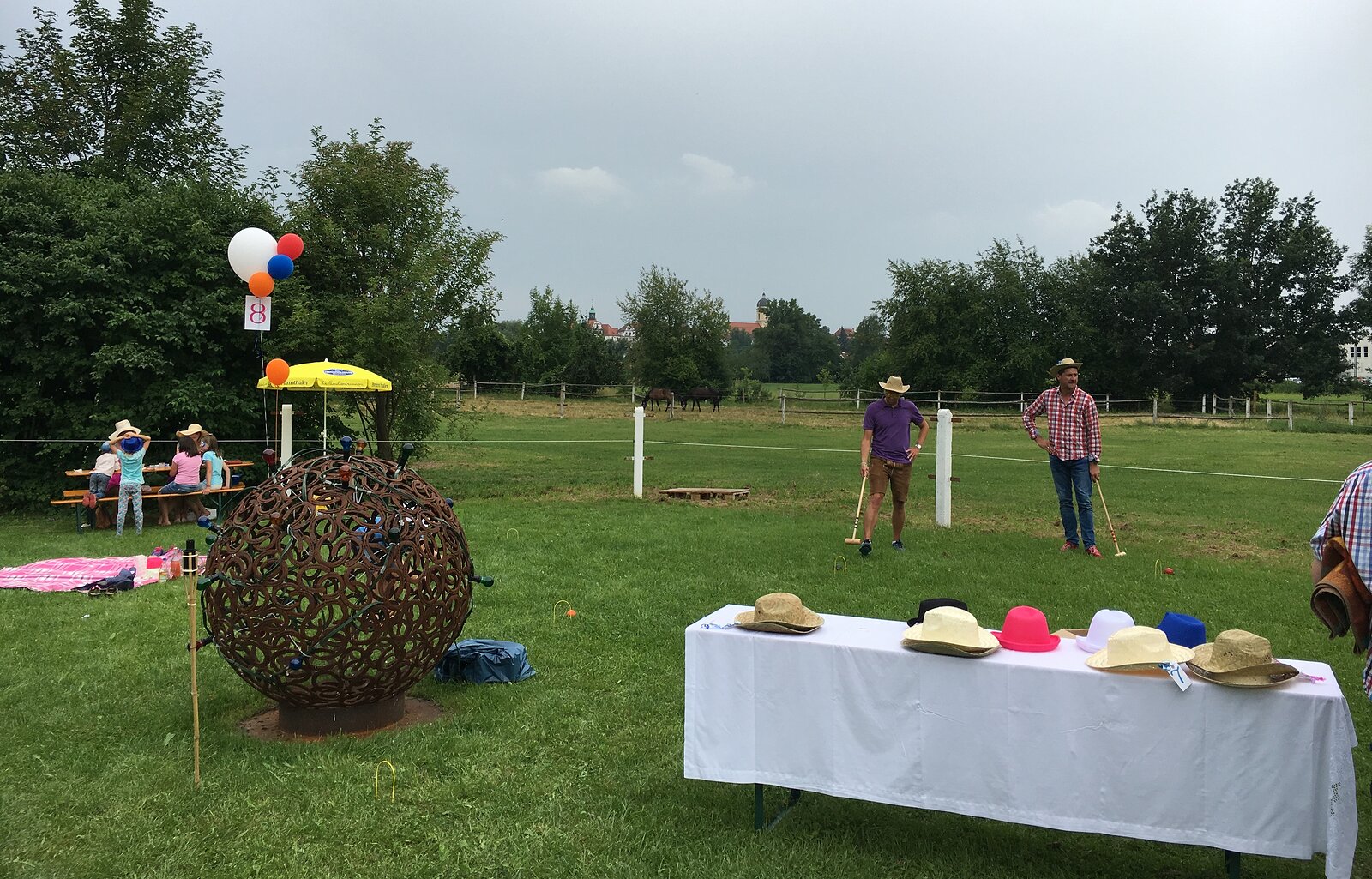 Das Sommerfest der Wirtschaftsjunioren Neuburg fand auf dem Reiterhof Lagleder unter dem Motto "von Ascot bis zu Gummistiefeln" statt. Jeder Gast erhielt beim Eintreffen einen Strohhut, mit dem jedem Besucher eine Tischnummer zugelost wurde. So ergaben sich bereits zu Beginn des Sommerfestes neue Kontakte und Bekanntschaften. Der Landesvorsitzende der Wirtschaftsjunioen, Sascha Schnürer, war gekommen, um Ulrike Wittmann und Armin Steger die "Goldene Juniorennadel", die höchste Auszeichnung der Wirtschaftsjunioren, zu überreichen. MdB Dr. Reinhard Brandl gratulierte den Geehrten herzlich und bedankte sich bei der Vorsitzenden, Claudia Heindl, für die Einladung.